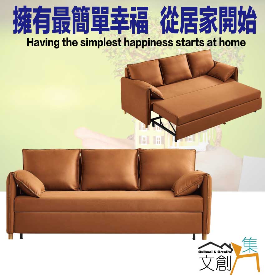 沙發將坐墊往前拉開後即可即可變化為沙發床使用,搭配滑輪底座讓您更變化使用.實用機能性設計打造居家便利性