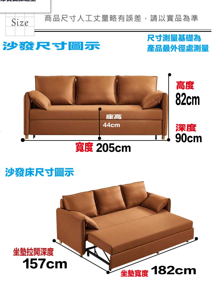 沙發床尺寸:(坐墊寬)182x(深)157x(座高)44公分