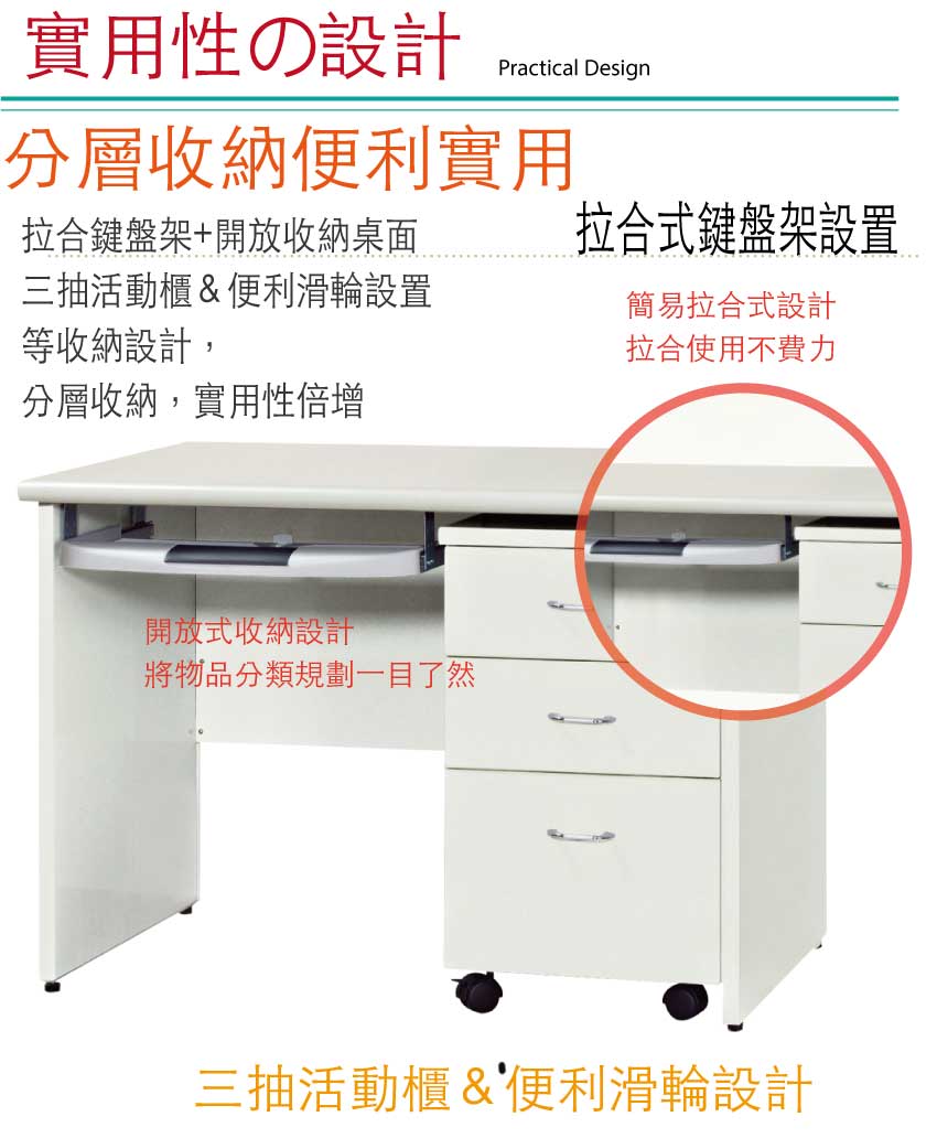 拉合式鍵盤架+開放收納層格+三抽屜活動櫃等便利收納空間設計