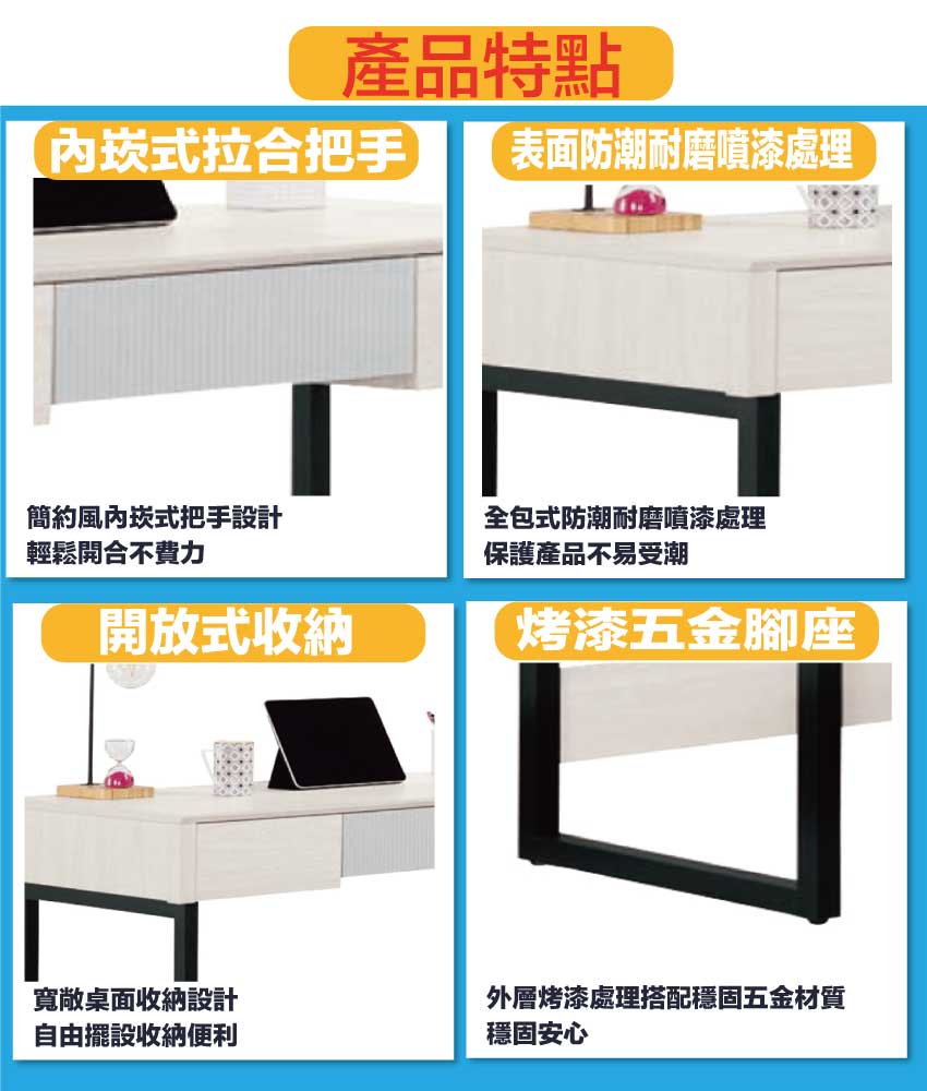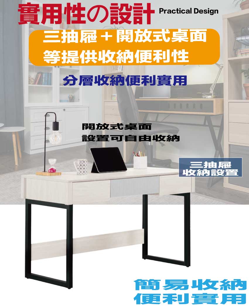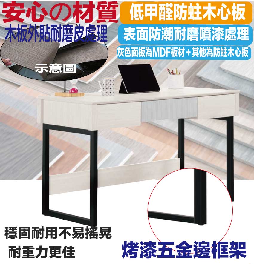 【文創集】克萊雙色4尺三抽書桌 木紋雙色系+安心材質製造,使用放心+搭配居家更便利,採用防蛀木心板+烤漆五金腳座+五金滑軌結構等安心材質製造 ,外層採用防潮耐磨噴漆處理搭配採用三抽屜+開放桌面等收納空間設計,全由專人配送到家,專業安心服務,替你省下更多時間!