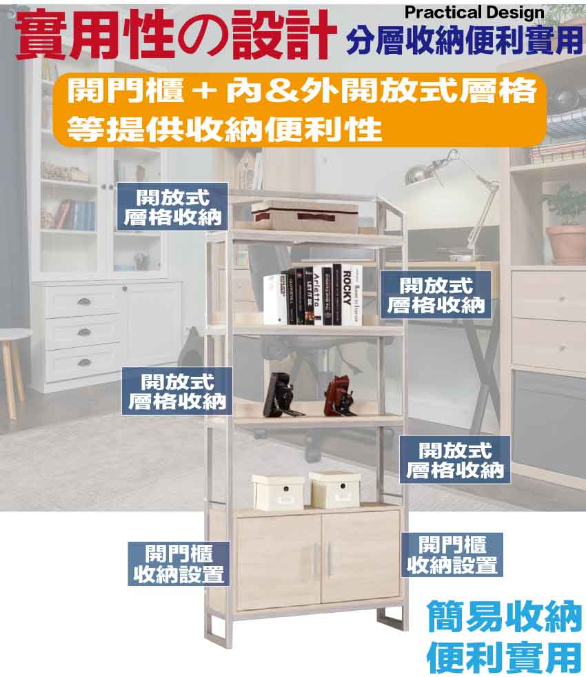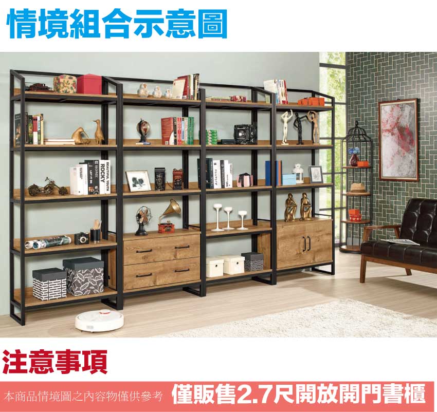 【文創集】華爾2.7尺開放二門金屬邊框書櫃(二色可選) 二色可選+安心材質製造,使用放心+搭配居家更便利,採用防蛀木心板+烤漆五金腳座+啞光銀金屬邊框等安心材質製造 ,外層採用防潮耐磨噴漆處理搭配採用開門櫃+內外開放層格等收納空間設計,全由專人配送到家,專業安心服務,替你省下更多時間