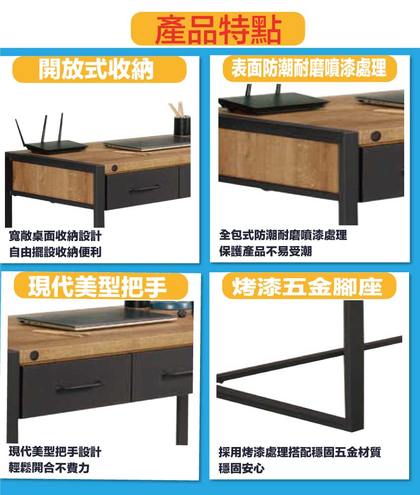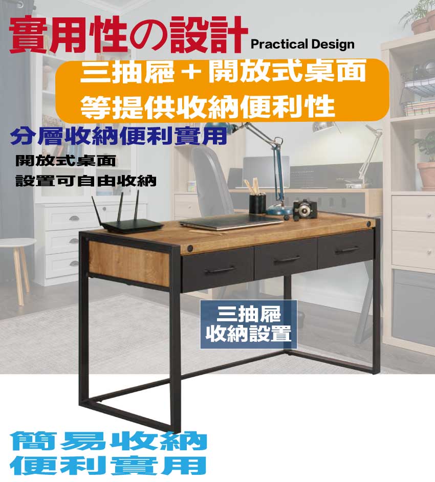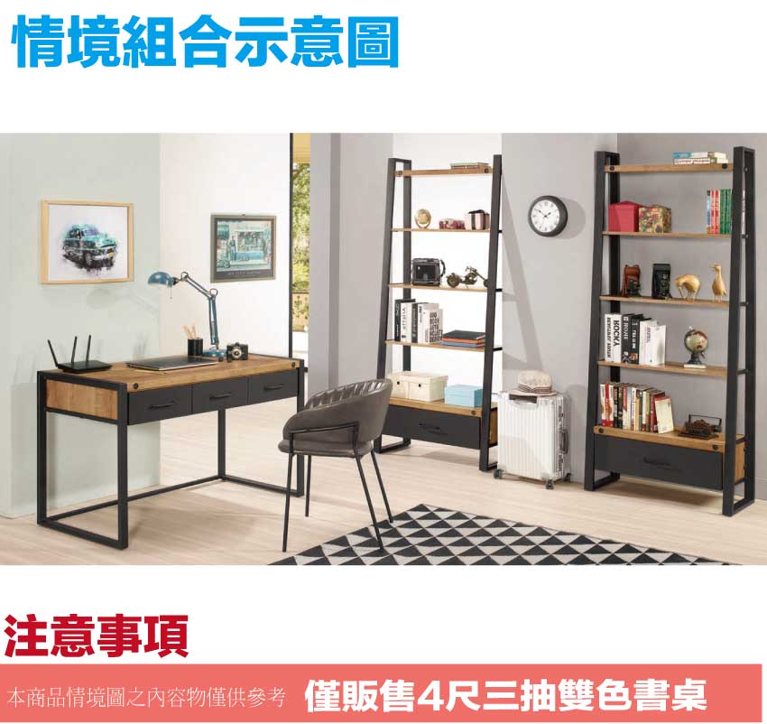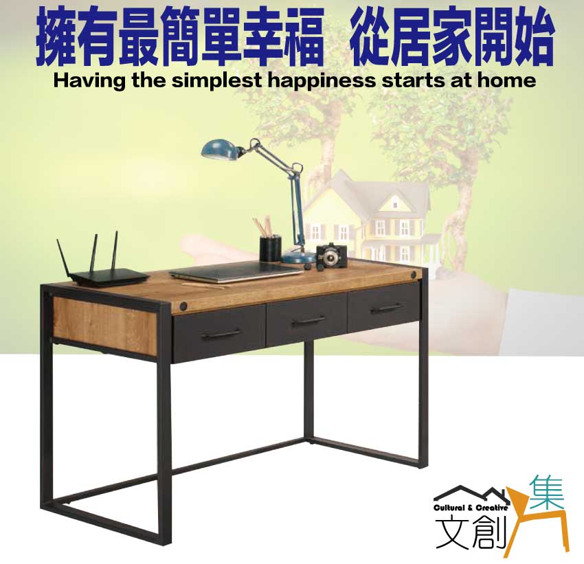 【文創集】華爾雙色4尺三抽鐵腳書桌 木紋雙色系+安心材質製造,使用放心+搭配居家更便利,採用防蛀木心板+烤漆五金腳座+五金滑軌結構等安心材質製造 ,外層採用防潮耐磨噴漆處理搭配採用三抽屜+開放桌面等收納空間設計,全由專人配送到家,專業安心服務,替你省下更多時間!