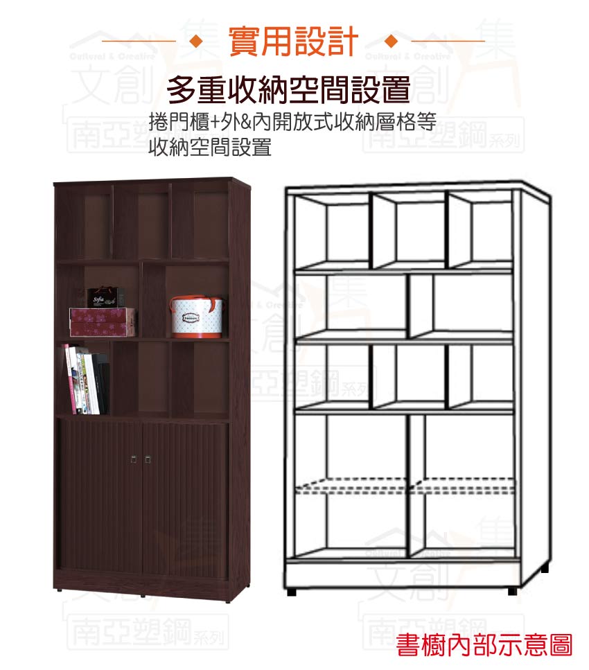 文創集】多莉 環保2.9尺南亞塑鋼雙拉門開放書櫃/收納櫃 產品採用第一品牌-台製南亞塑鋼舒美板材質,整體材質採用防水+防燃+無甲醛安心塑鋼材質製造 ,搭配雙拉門+內&外收納層格等便利設計,防止受潮,增加支撐力,堅固不會塌陷,全由專人配送到家,專業安心服務,替你省下更多時間!