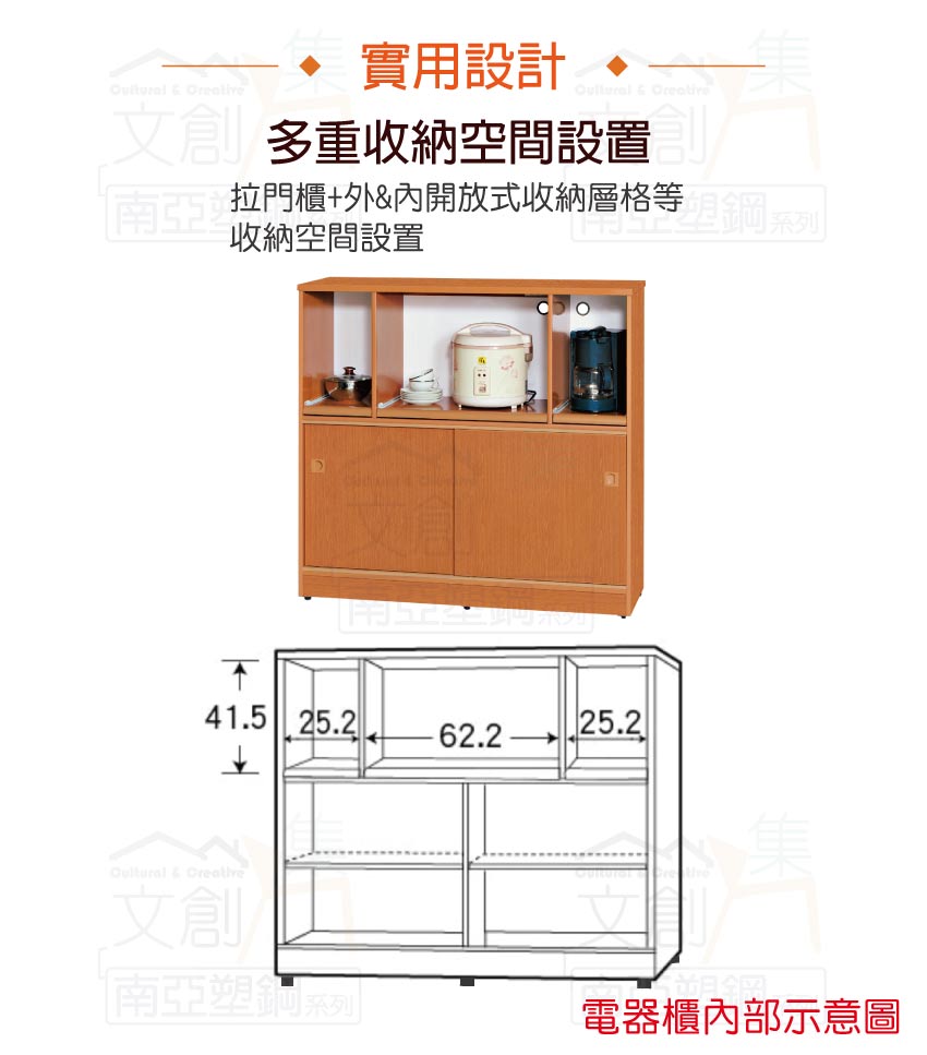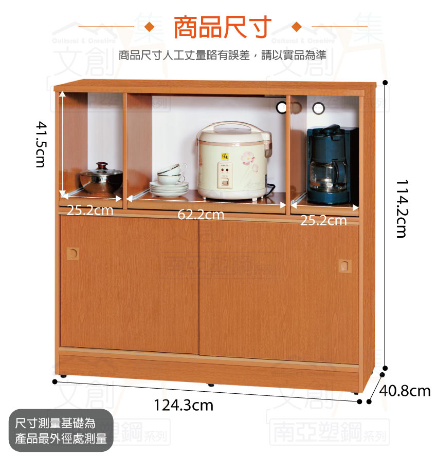 【文創集】泰亞 環保4.1尺南亞塑鋼推門層架中餐櫃/收納櫃 產品採用第一品牌-台製南亞塑鋼舒美板+五金滑軌結構材質,整體材質採用防水+防燃+無甲醛安心塑鋼材質製造 ,搭配推門櫃+內&外開放式層格+拉合式層架等便利收納空間設計,防止受潮,增加支撐力,堅固不會塌陷,全由專人配送到家,專業安心服務,替你省下更多時間!