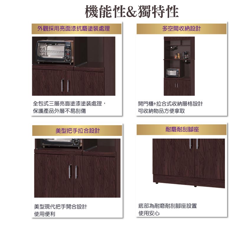 開門櫃+內&外開放式層格+拉合式層架等便利收納空間設計