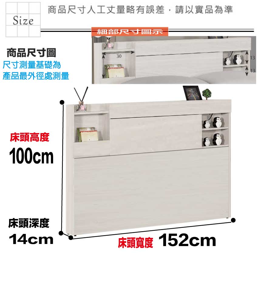 床頭尺寸:(寬)152x(深)14x(高)100/公分