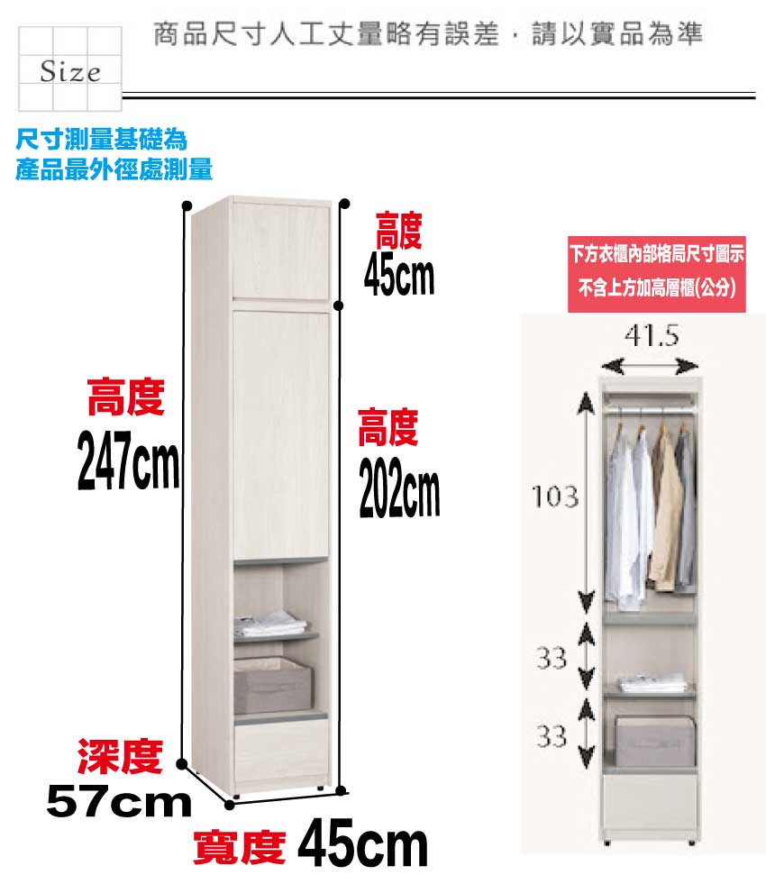尺寸:(寬)45x(深)57x(高)247/公分