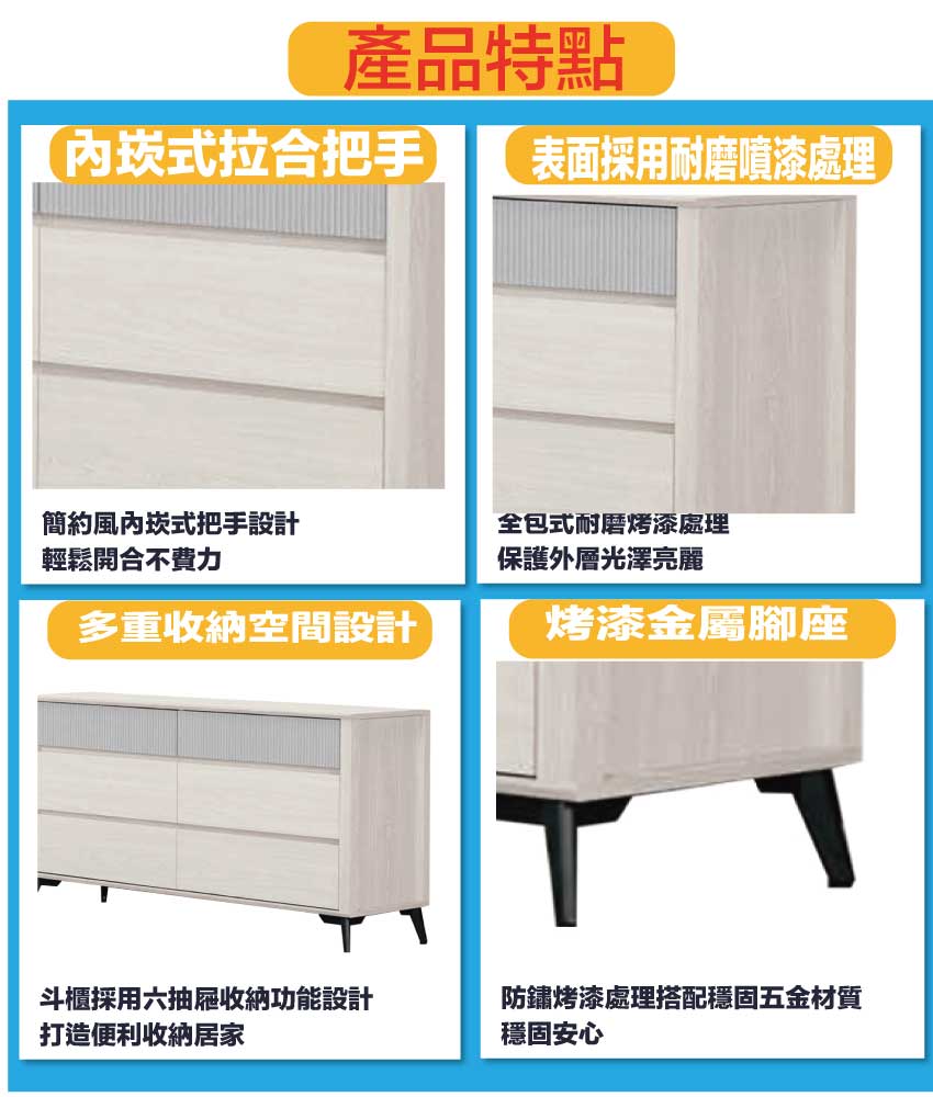 【文創集】克萊4尺雙色六抽斗櫃 木紋雙色系+安心材質製造,使用放心+搭配居家更便利,採用防蛀木心板+五金滑軌結構+烤漆金屬腳座等安心材質製造 ,外層採用防潮耐磨噴漆處理搭配採用六抽屜+開放桌面等收納空間設計,全由專人配送到家,專業安心服務,替你省下更多時間!