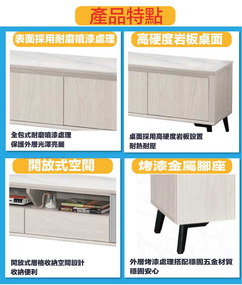 【文創集】克萊雙色6.7尺岩板開門二抽電視櫃(含可收納椅凳單張) 木紋雙色系+安心材質製造,使用放心+搭配居家更便利,採用防蛀木心板+五金滑軌結構+烤漆金屬腳座+防夾手緩衝門片五金+12mm高硬度岩板桌面板等安心材質製造 ,外層採用防潮耐磨噴漆處理搭配採用開門櫃+二抽屜+內&外開放層格等收納空間設計,全由專人配送到家,專業安心服務,替你省下更多時間!