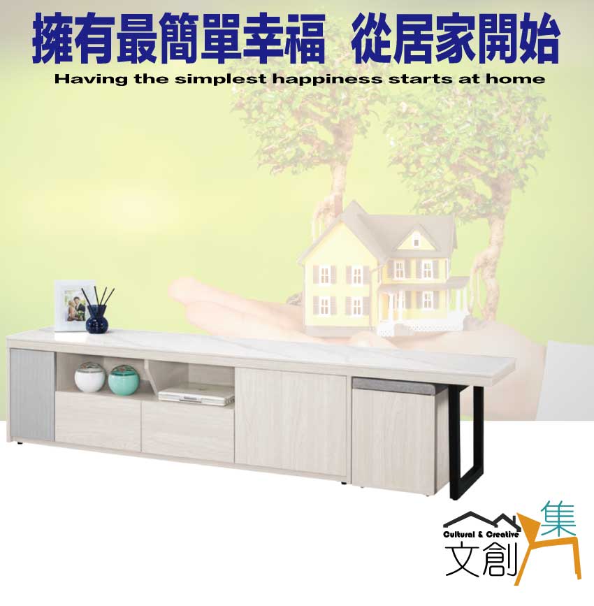 【文創集】克萊雙色6.7尺岩板開門二抽電視櫃(含可收納椅凳單張) 木紋雙色系+安心材質製造,使用放心+搭配居家更便利,採用防蛀木心板+五金滑軌結構+烤漆金屬腳座+防夾手緩衝門片五金+12mm高硬度岩板桌面板等安心材質製造 ,外層採用防潮耐磨噴漆處理搭配採用開門櫃+二抽屜+內&外開放層格等收納空間設計,全由專人配送到家,專業安心服務,替你省下更多時間!