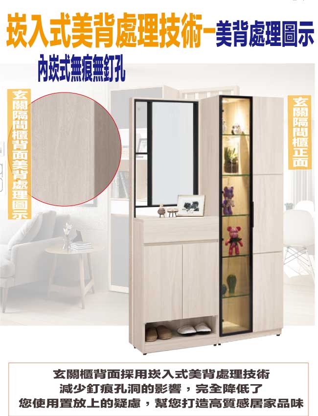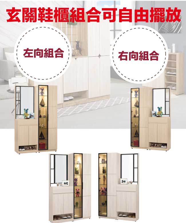 玄關櫃組合除了二色系可讓您選擇外另玄關櫃也可左&右二向組合任意依據實際使用需求擺設方位