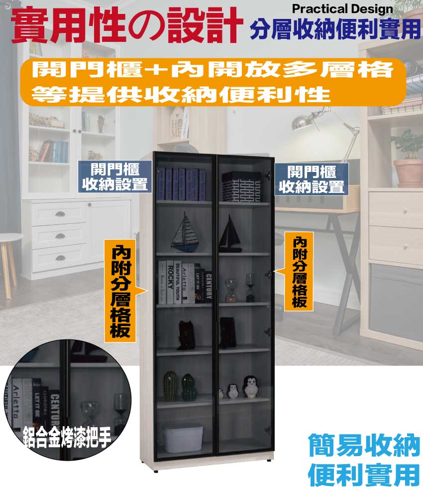 【文創集】萊格2.7尺鋁門黑玻書櫃 木紋雙色系+安心材質製造,使用放心+搭配居家更便利,採用防蛀木心板+防潮耐磨底座+防夾手緩衝門片五金+鋁製黑漆邊框+5mm強化灰玻璃等安心材質製造 ,外層採用防潮耐磨噴漆處理搭配採用開門櫃+內開放層格等收納空間設計,全由專人配送到家,專業安心服務,替你省下更多時間!