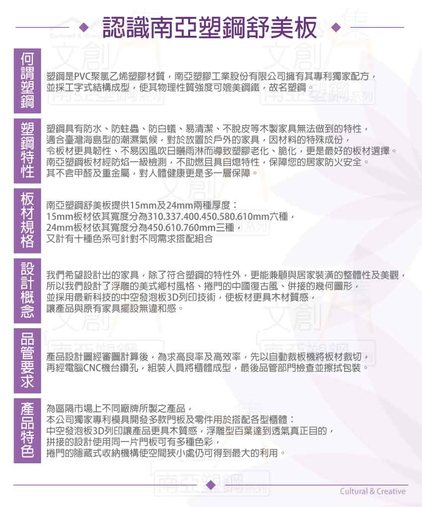 請注意:本公司所販售南亞塑鋼產品為保障消費者權益及維護產品品質的考量,產品皆為接單後生產組裝(配送產品為已組裝完成之半成品),等待週期約10-14天工作天(不含實際配送日期等待天數),請您訂購前務必事先確認是否可以等待,避免引發不必要之消費爭議,如有不便之處請見諒!