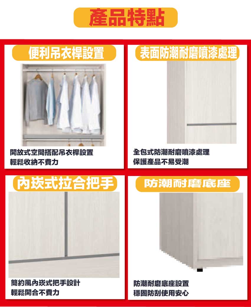 材質:防蛀木心板+防潮耐磨腳座+防夾手緩衝門片五金+五金滑軌結構