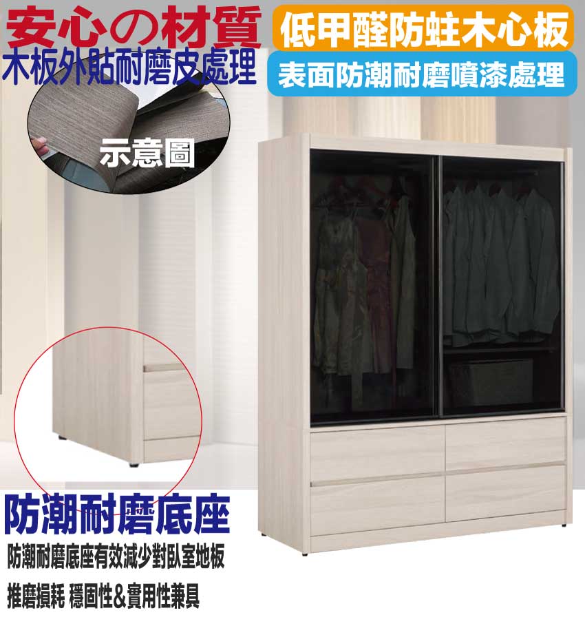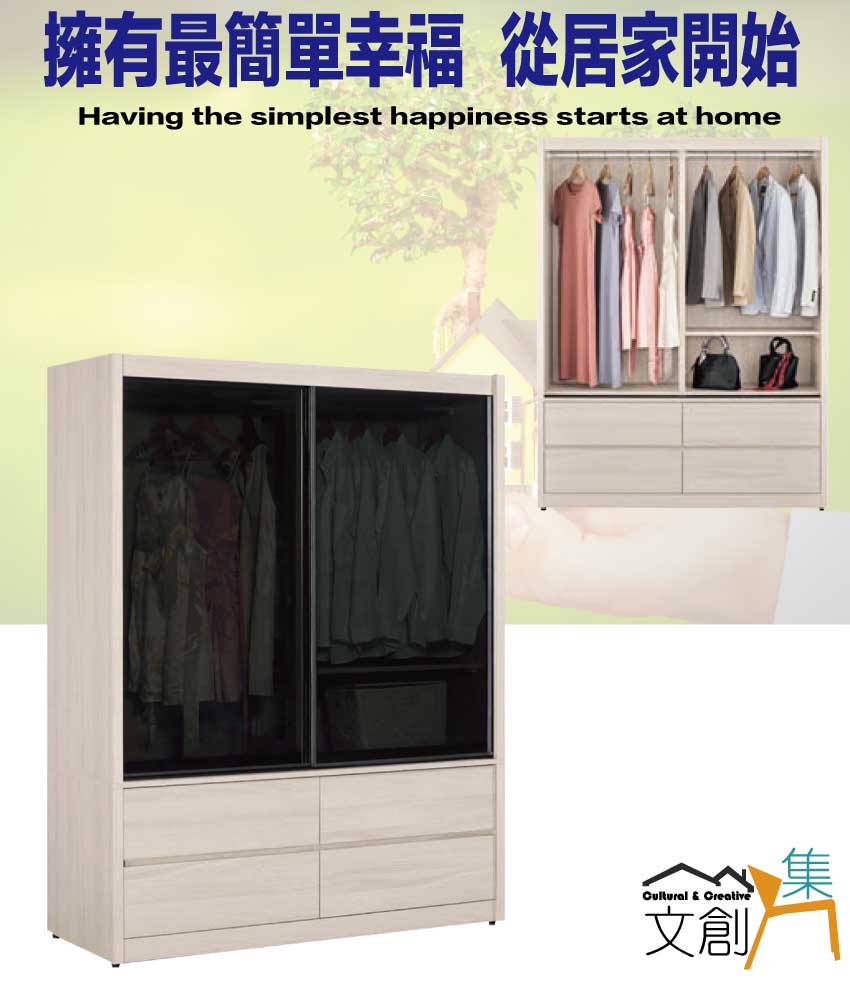 【文創集】朵利5.1尺鋁製推門黑玻四抽衣櫃 木紋雙色系+安心材質製造,使用放心+搭配居家更便利,採用防蛀木心板+防潮耐磨底座+五金滑軌結構+鋁製黑漆邊框+5mm強化黑玻璃等安心材質製造 ,外層採用防潮耐磨噴漆處理搭配採用推門櫃+吊衣桿+四抽屜+內開放層格等收納空間設計,全由專人配送到家,專業安心服務,替你省下更多時間!