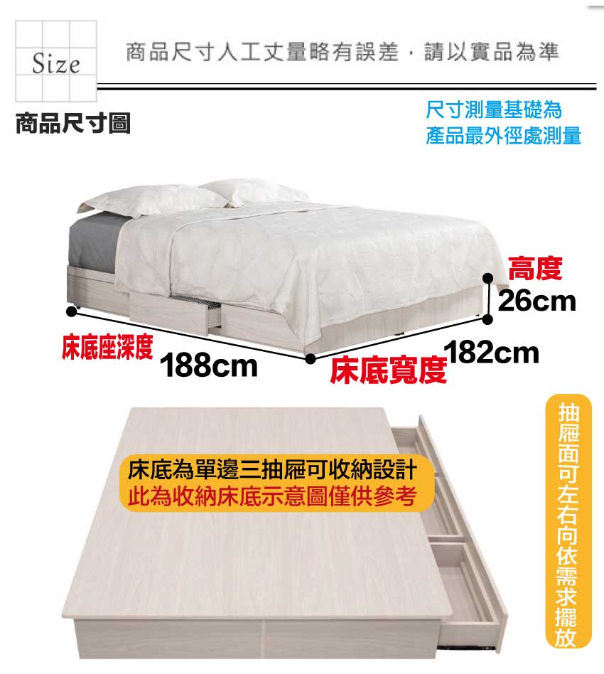 床底尺寸:(寬)182x(深)188x(高)26/公分