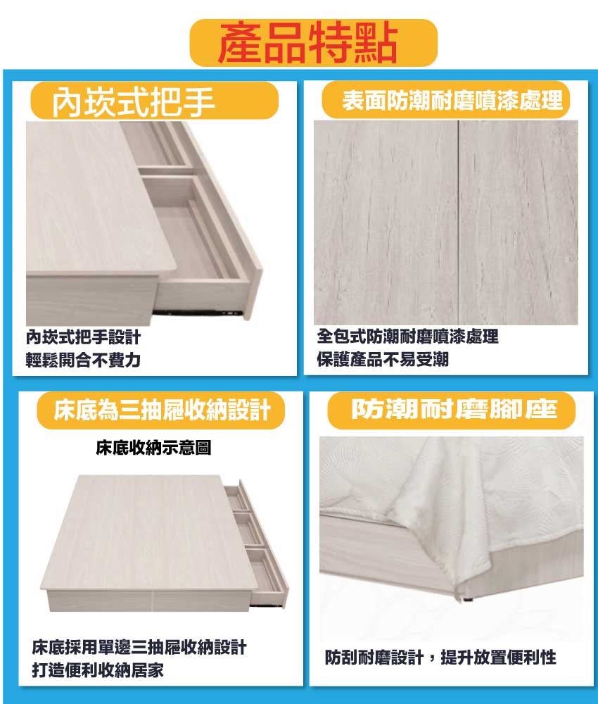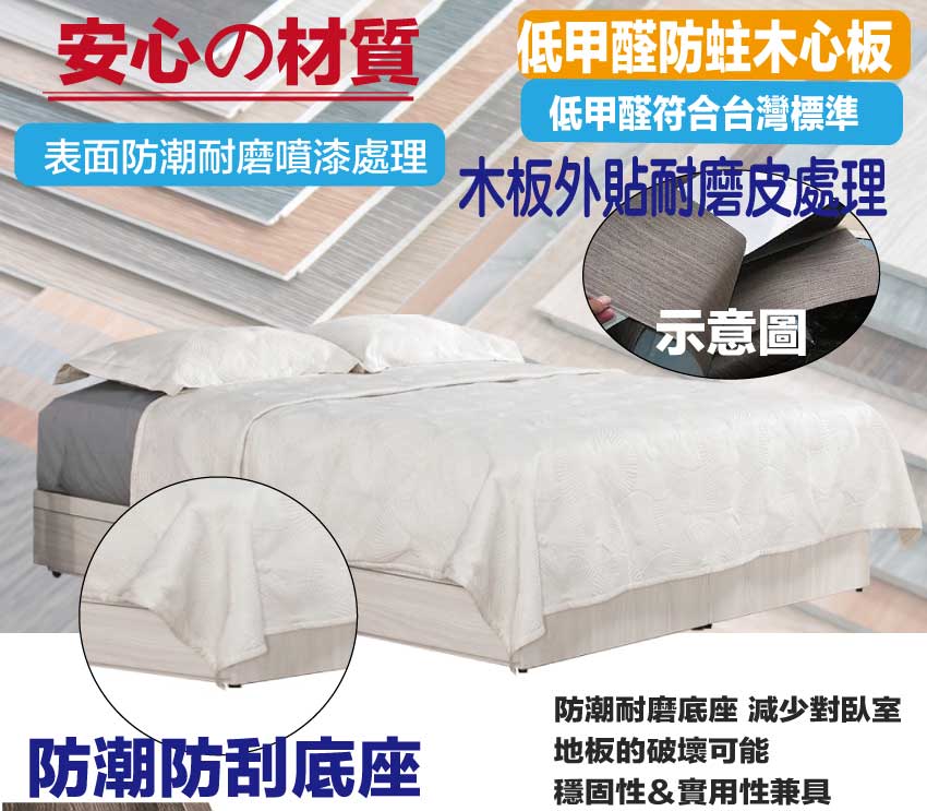 材質:防蛀木心板+六分木床板+防潮耐磨底座