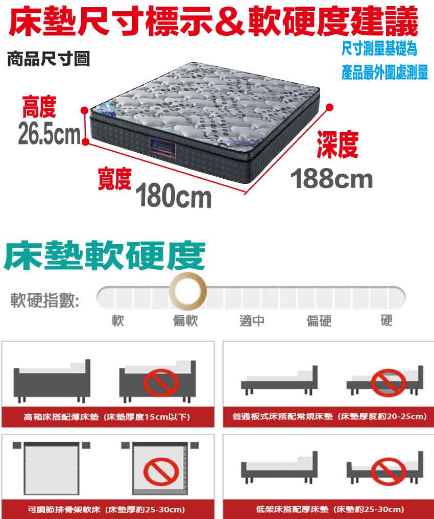 ◆產品名稱:【文創集-床墊系列】石墨烯抗菌6尺雙人加大獨立筒床墊◆商品尺寸:(寬)180x (深)188 x (高)26.5/公分◆商品材質:3D立體特殊氣流車花+Graphene石墨稀紗線針織舒柔表布+瑞士Sanitized抗菌處理技術+防穿刺透氣棉+止滑透氣底布+塑犁記憶釋壓纋衝棉+加強型四邊M型支撐邊框+備長碳釋壓棉+高碳鋼739顆2.0mm靜音抗擾中鋼彈簧(袋裝獨立筒彈簧)+高科技不織布