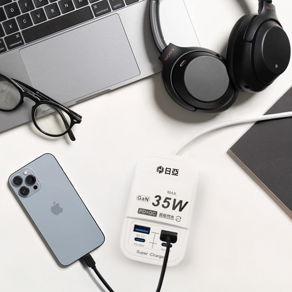 高效充電十大保護:智慧分流、過載保護、過熱保護、電壓保護、漏電保護、智路保護、靜電防護、穩定電壓、 過電保護、智慧節能。符合BSMI新安規4 USB,智慧辨識PD25W+QC3.0耐高溫防火材質USB充電插座適用iphone千足銅insideTYPEC PD35專用充電插孔USB智慧充電孔附收納束口袋GaN氮化鎵芯片,效率更高,溫控及穩定性更好▼商品規格品名:日亞 快充2 PD35W +2 QC 3.0 USB 電源供應器型號:UB-25規格:4 USB(PD+QC)長度:60CM主要材質:銅、PC塑膠USB額定輸入電流:0.76AUSB輸出總功率:35WUSB輸出:QC(18W)TypeA1/A2:5V/3.0A、9V/2A、12V/1.5APD(35W)TypeC1/C2:5V/3.0A、9V/3A、12V/2.92A、15V/2.33A、20V/1.75A(PD、QC快充功能只能擇一使用,同時使用時輸出合計5V/3A。)(設備本身不具任何充電協議時,TypeA支援DCP DE提供1.5A,TypeC不支援無快充協議充電)輸入工作額定電壓:AC100-240V 50/60Hz最大突波吸收能量:85焦耳最大突波吸收電壓:4000V最大突波吸收電流:2000A額定電流:15A額定容量:MAX 1650W主要成份:電線、PC塑膠、電子元件製造日期:標示於包裝上產地:中國(台商製造,日本品質)保存期限:常溫保存10年驗證登錄:R64847 RoHS保固:新品瑕疵保固 ※使用前請先詳閱包裝上使用說明※圖片僅供參考,商品依實際供貨為準。※商品如有顏色區別,未特別說明則採隨機出貨,不供挑色。※商品如經拆封、使用、或拆解以致缺乏完整性及失去再販售價值時,恕無法退(換)貨!※產品文案為原廠(供應商)所提供,若有變動敬請參照實際商品為準。※請勿盜用圖片進行商業用途,違者必究