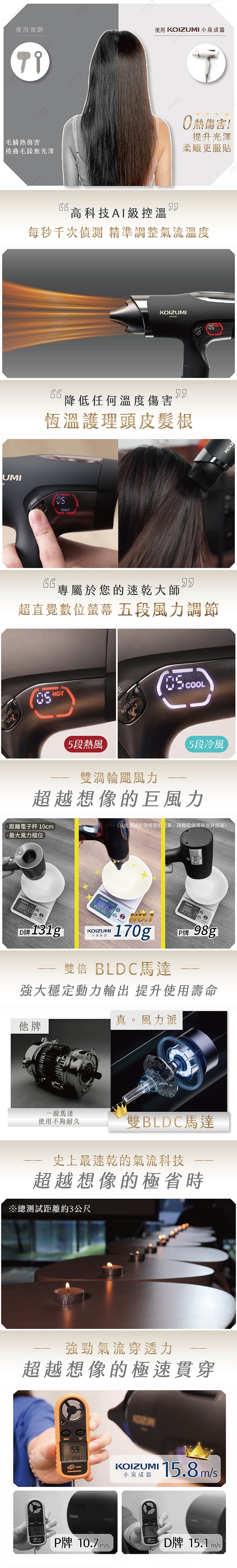 🔹 AI 智慧控溫:即時偵測髮溫,自動調整出風,不高溫、不燙髮。