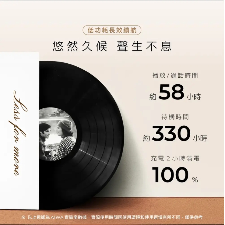 超長 58 小時播放/通話時間日常使用數天不充電,出差、旅行也安心。