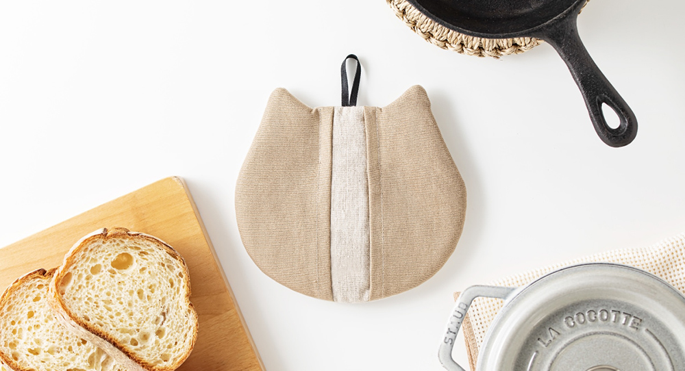 【&NE】Japan-Made Cat-Shaped Heat-Resistant Trivet (Also Usable as Oven Mitt) – Beige