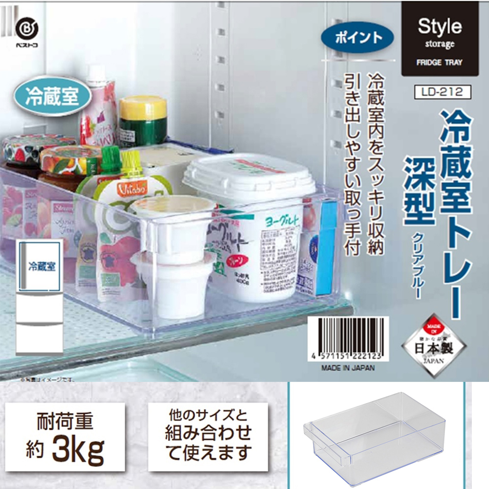 【bestco】Japan-Made Deep Refrigerator Storage Box – Large (Drawer-Style Handle / Supports up to 3kg)