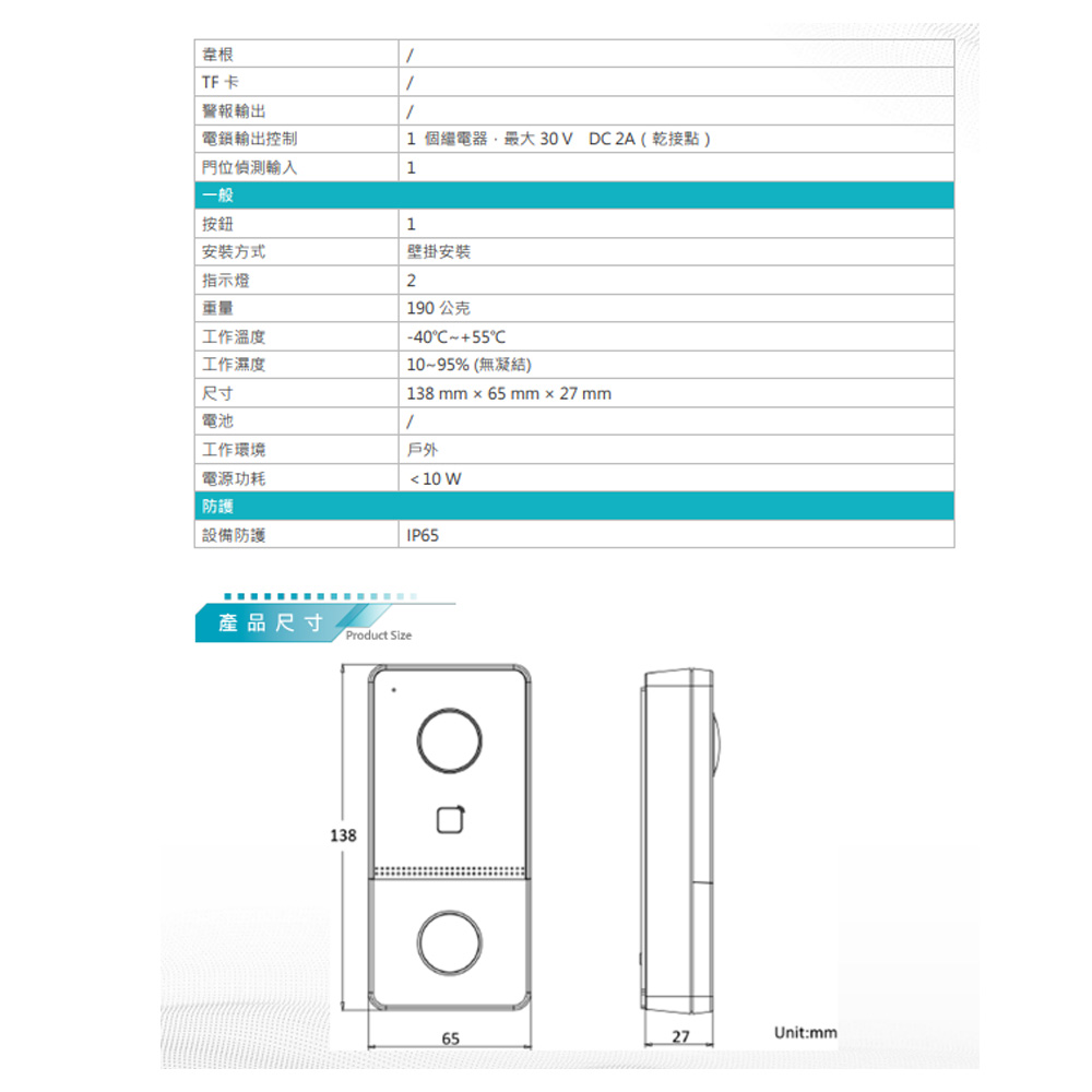昌運監視器 DJS-DF113 2MP單按鍵影視感應網路門口機 雙向語音對講 內建卡機模組