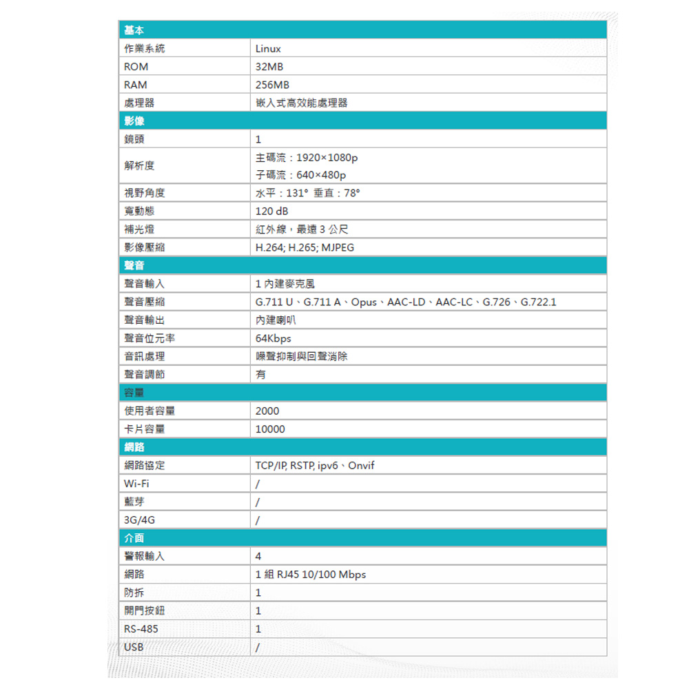 2 MP 鏡頭,附紅外線輔助照明