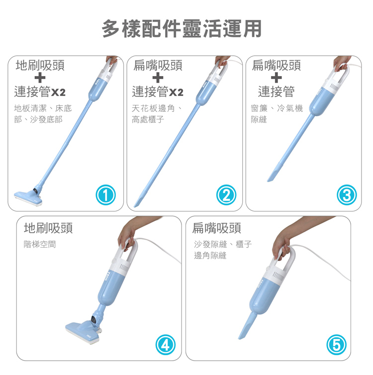 附加隙縫扁嘴吸頭,角落清掃更容易