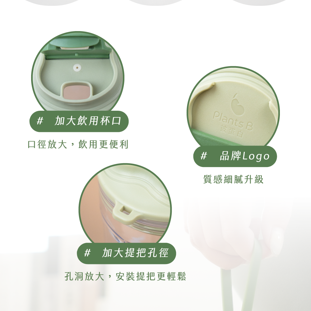 質選隨行杯,給你喝蛋白飲的美好儀式感!簡約中又細節滿滿,為想好好品味生活的你量身打造\\\ 彼蛋白質選隨行杯 2.0 升級亮點大公開 ///✔︎ 杯口口徑放大,飲用更便利✔︎ 提把孔放大,安裝提把更輕鬆✔︎ 品牌 logo,質感細膩升級▪️ 簡約外型,運動或上班喝都百搭;插畫刻度細節,為每次搖飲增添幸福感▪️ 配件可拆洗,不留異味殘渣,保養更輕鬆▪️ 精選耐用 tritan 材質,對健康好,對地球也好▪️ 質感禮盒包裝,保護杯身不碰撞,送禮送自己都適合