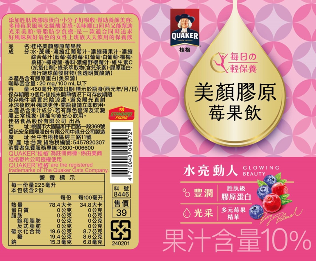 ◎Brand:桂格 ◎Specifications: 450ml毫升 x 1 x 4Bottle瓶