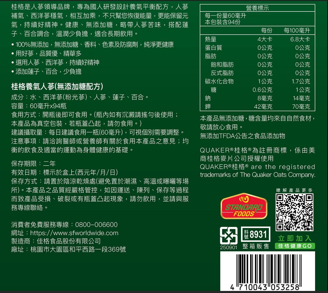 Quaker Yang Chi Ginseng Tonic