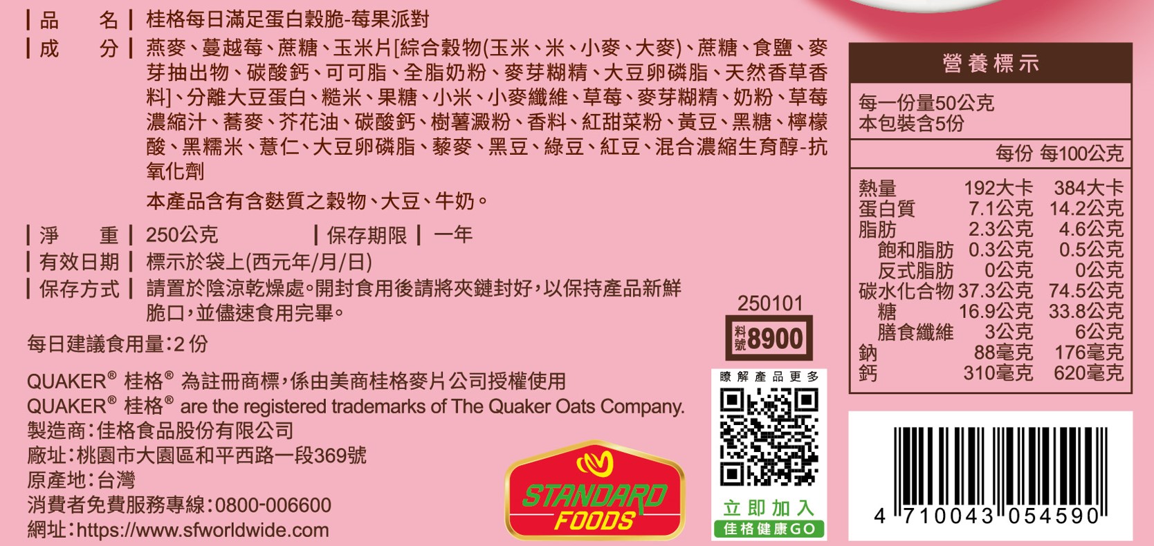 ◎Brand:桂格 ◎Specifications: 250g克 x 1 x 1Bag袋