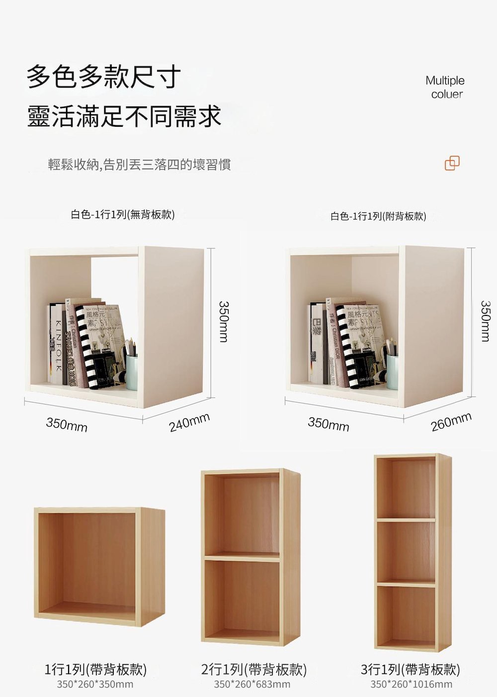 款式:一行一列 × 白色 ×有背板有櫃門