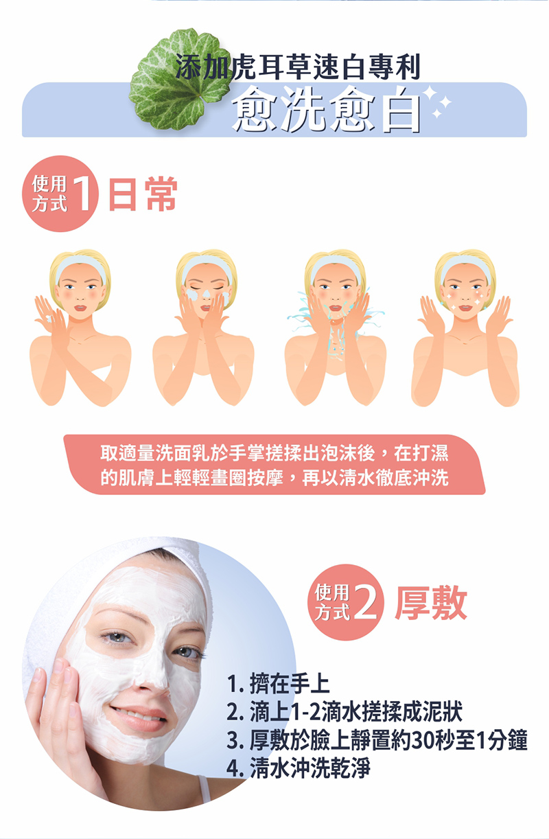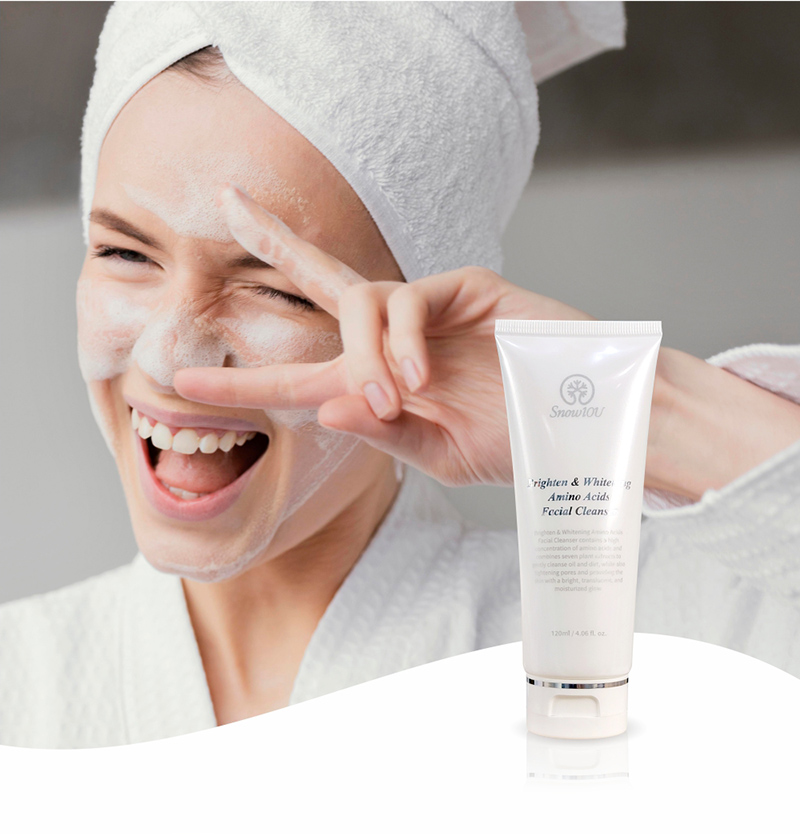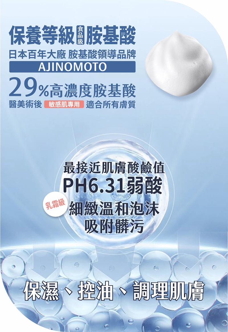以高濃度胺基酸,結合專利美白成分,溫和洗淨油脂髒污,同時緊緻毛孔,提供肌膚淨白透亮光潤感。