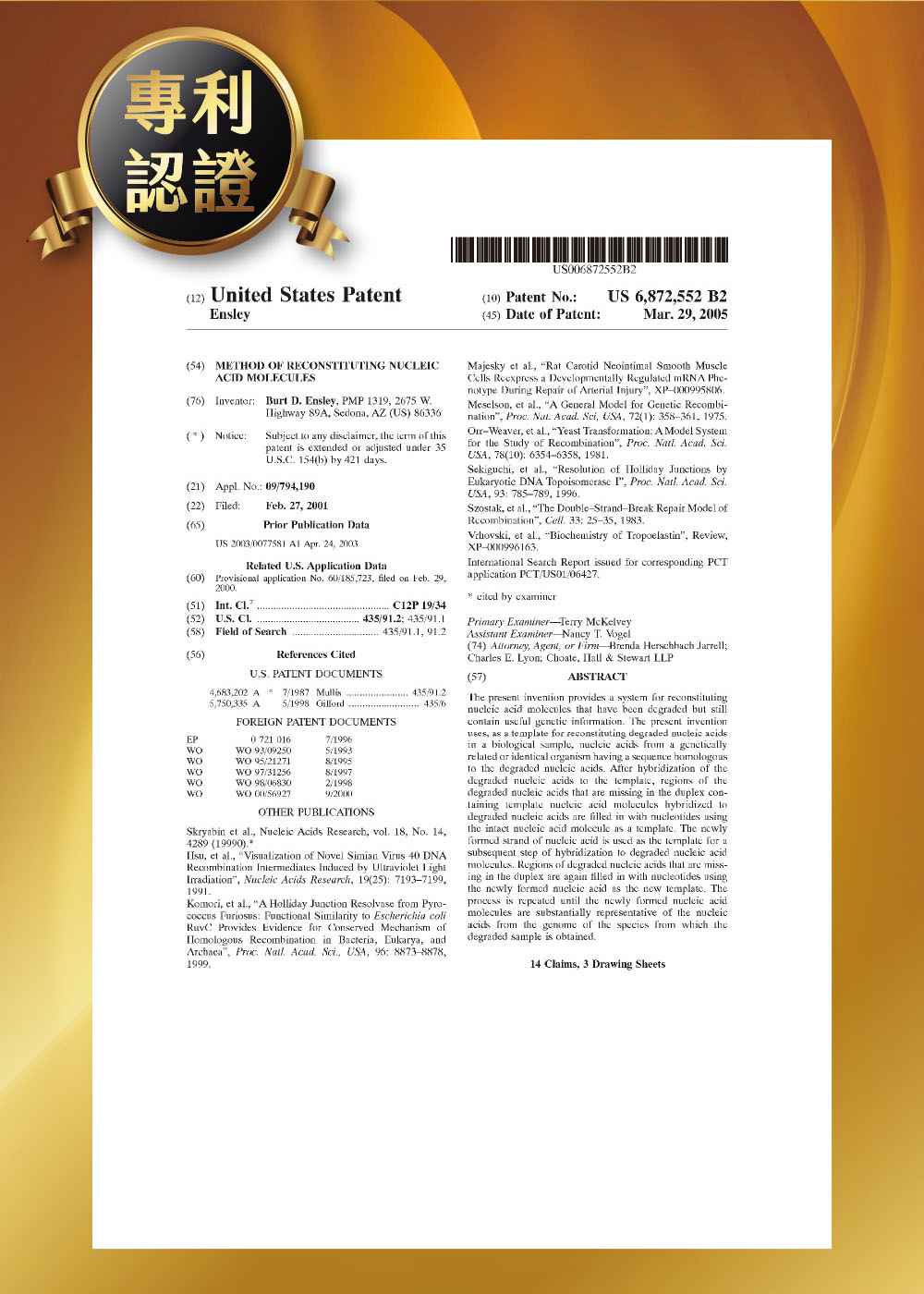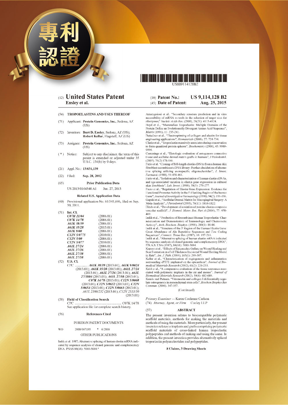 美國專利 彈力素黃金乳霜