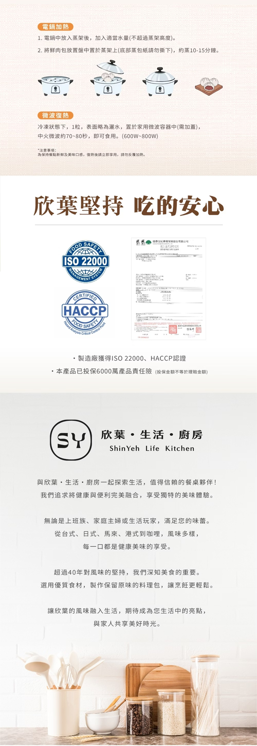 麵粉、水、豬肉(含中油丁)(台灣)、鹹蛋黃(鴨蛋、食鹽)、蔗糖、蔭瓜(越瓜、水、砂糖、醬油、溢味優SP(氯化鈉、胺基乙酸、DL-胺基丙酸、琥珀酸二鈉、乳糖、5'-次黃嘌呤核苷酸二鈉、5'-鳥嘌呤核苷磷酸二鈉、麥芽糊精)、食甜-KN (醋磺內酯鉀(甜味劑)、麥芽糊精、紐甜(甜味劑)) (甜味劑)、檸檬酸、甘草萃(甜味劑)、偏磷酸鈉)、洋蔥、醬油、大豆蛋白、酵母(酵母、水分、卵磷脂(大豆提煉))、植物油(棕櫚油、硬質棕油)、樹薯澱粉、蛋白、醇米霖(糯米、米麴、果糖、水、釀造酢、鹽)、料理米酒、複方乳化劑(D-山梨醇、大豆油、大豆卵磷脂、脂肪酸甘油酯、脂肪酸蔗糖酯)、玉米澱粉、明膠(豬)、食鹽、胡椒粉(白胡椒、麩皮粉、麥芽糊精、玉米澱粉、綠辣椒、辣椒、茶枝