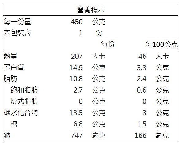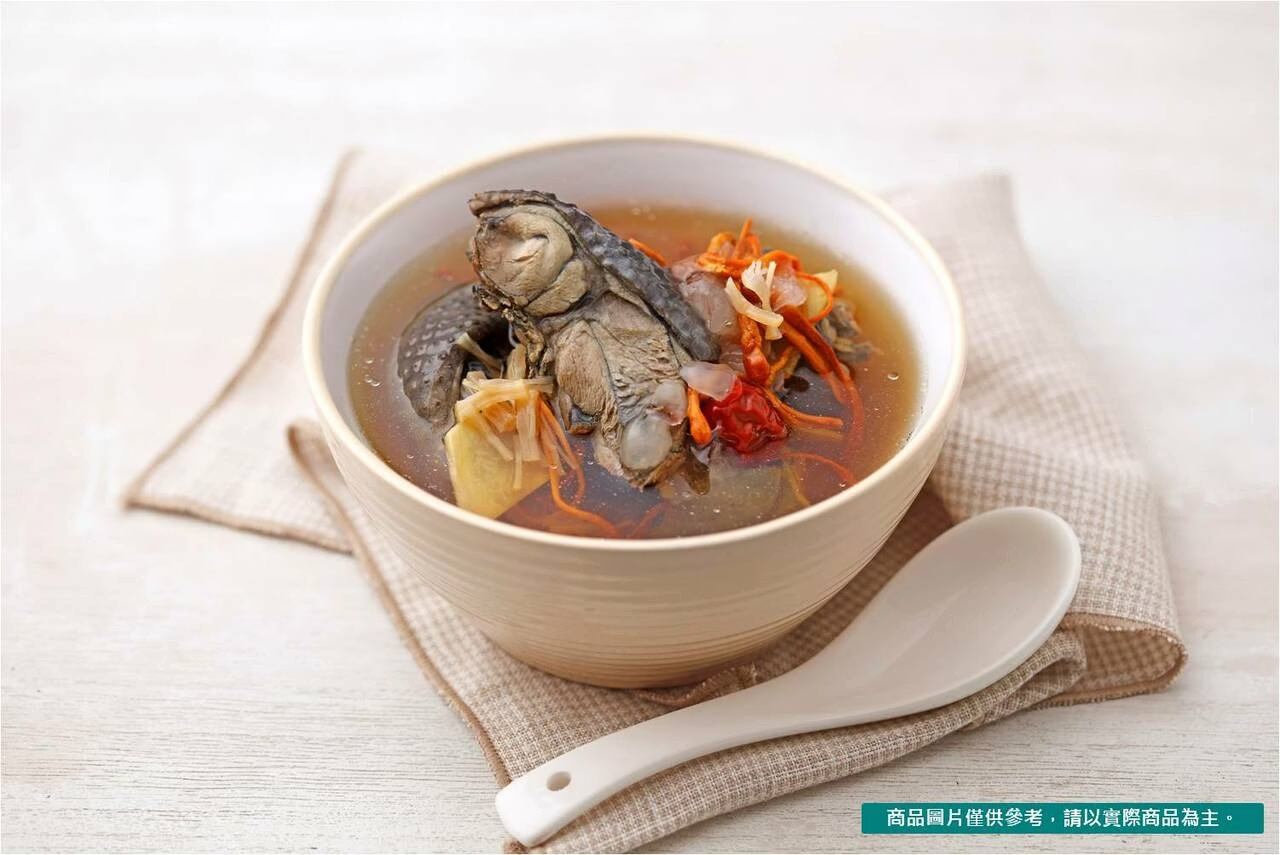 烏骨雞、干貝、雪蓮子(鷹嘴豆)、蛹蟲草、薑、椰子汁、米酒、水、鹽、調味劑(L-麩酸鈉、鹽)