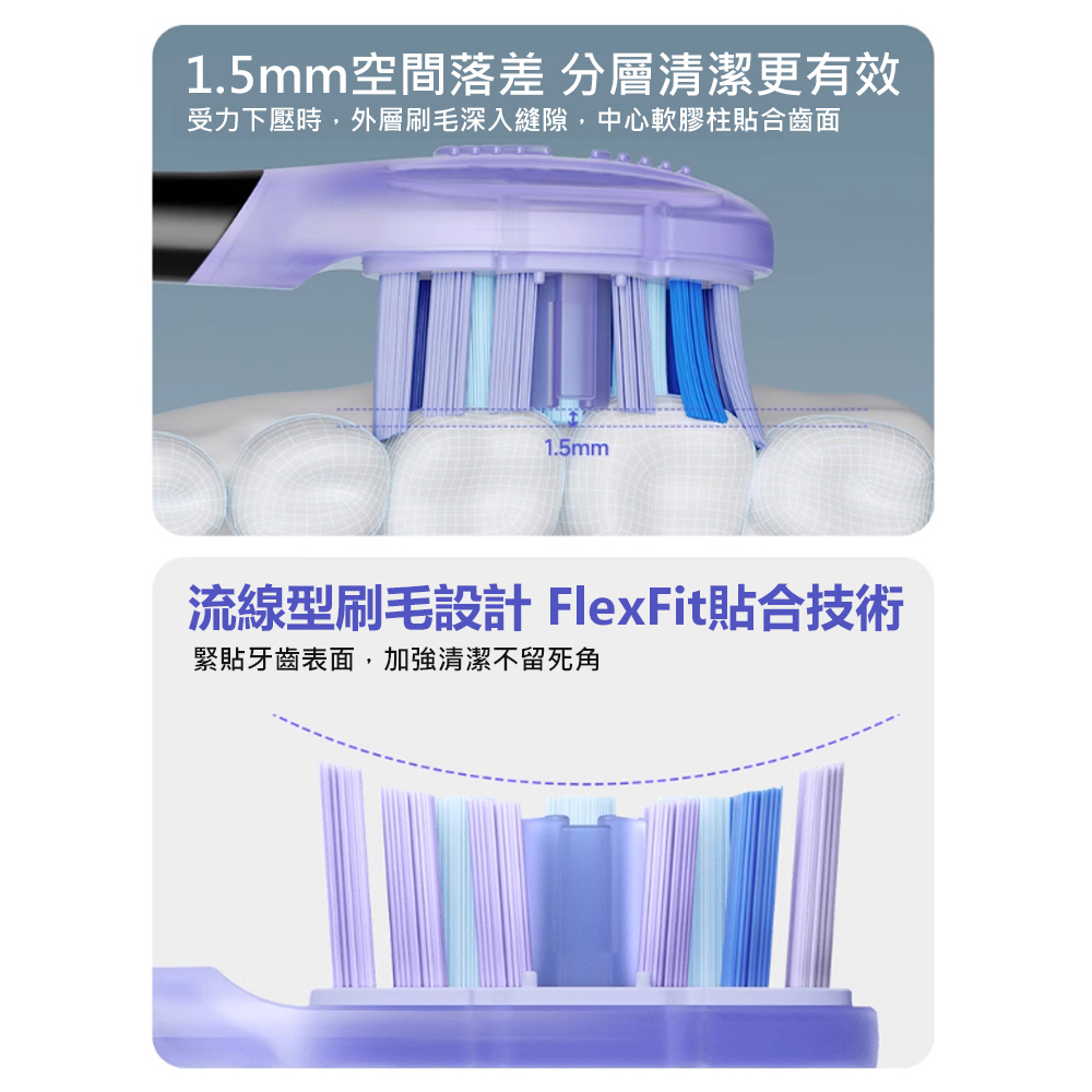 ✅雙環亮白圈設計,1.5mm分層清潔更有效