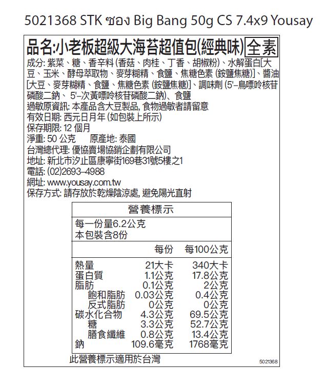 ◎Brand:泰國小老板 ◎Specifications: 50g克 x 1 x 1Bag袋