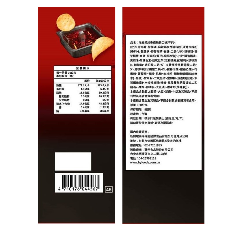 ◎Brand:海底撈 ◎Specifications: 60g克 x 1 x 1Bag包