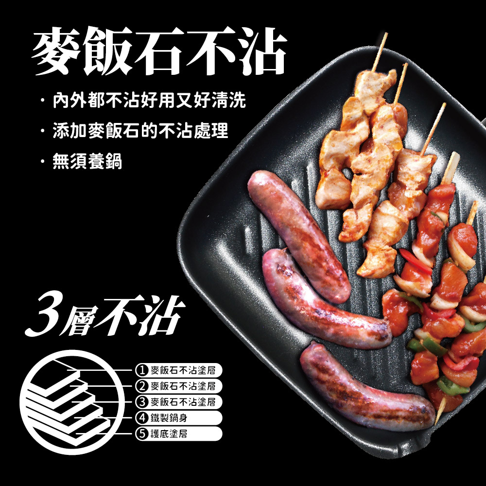 ※可煎牛排、烤肉,立體條紋煎出美味烤痕。