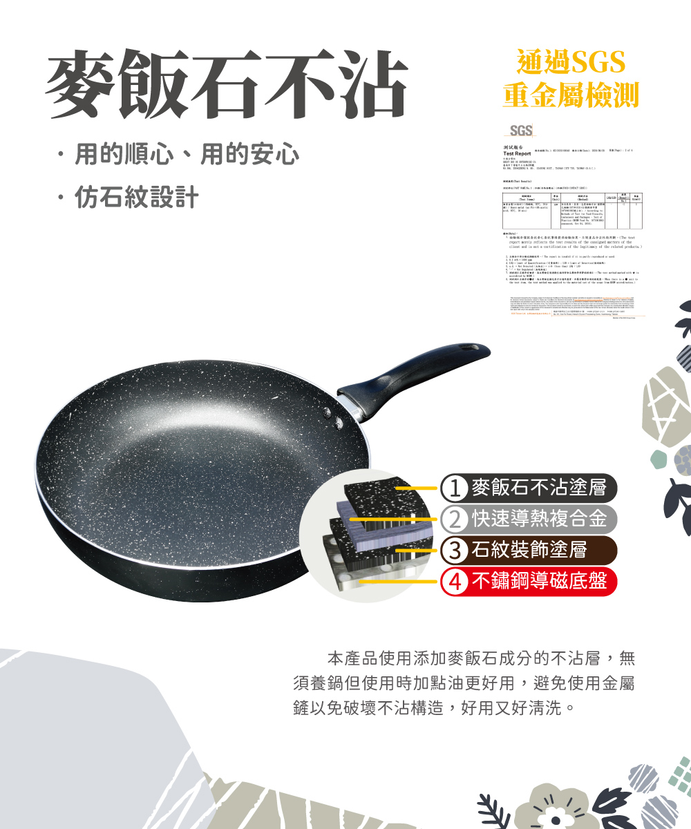 ◆鍋身材質:高級複合金、鍋面不沾處理。