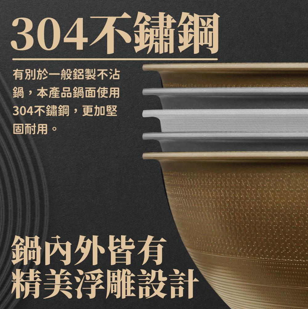 ◆鍋身材質:304不鏽鋼、鋁合金、430不鏽鋼、鈦不沾處理。