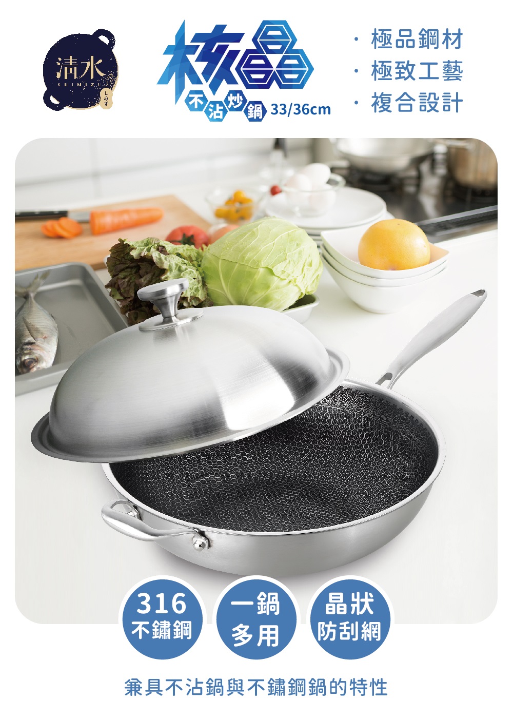 ◆鍋身材質:內層採用316不鏽鋼,不沾塗層,外層採用430導磁性不鏽鋼。