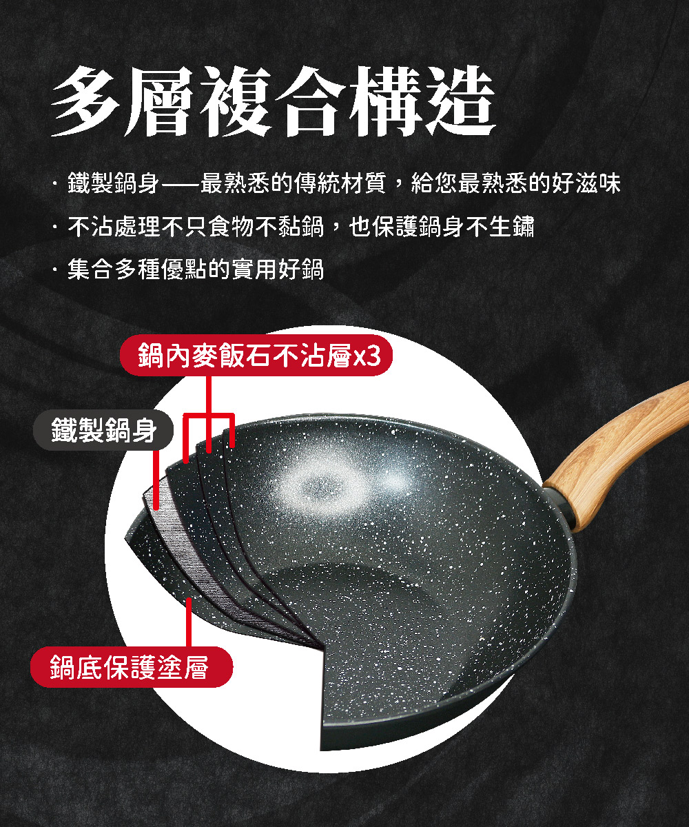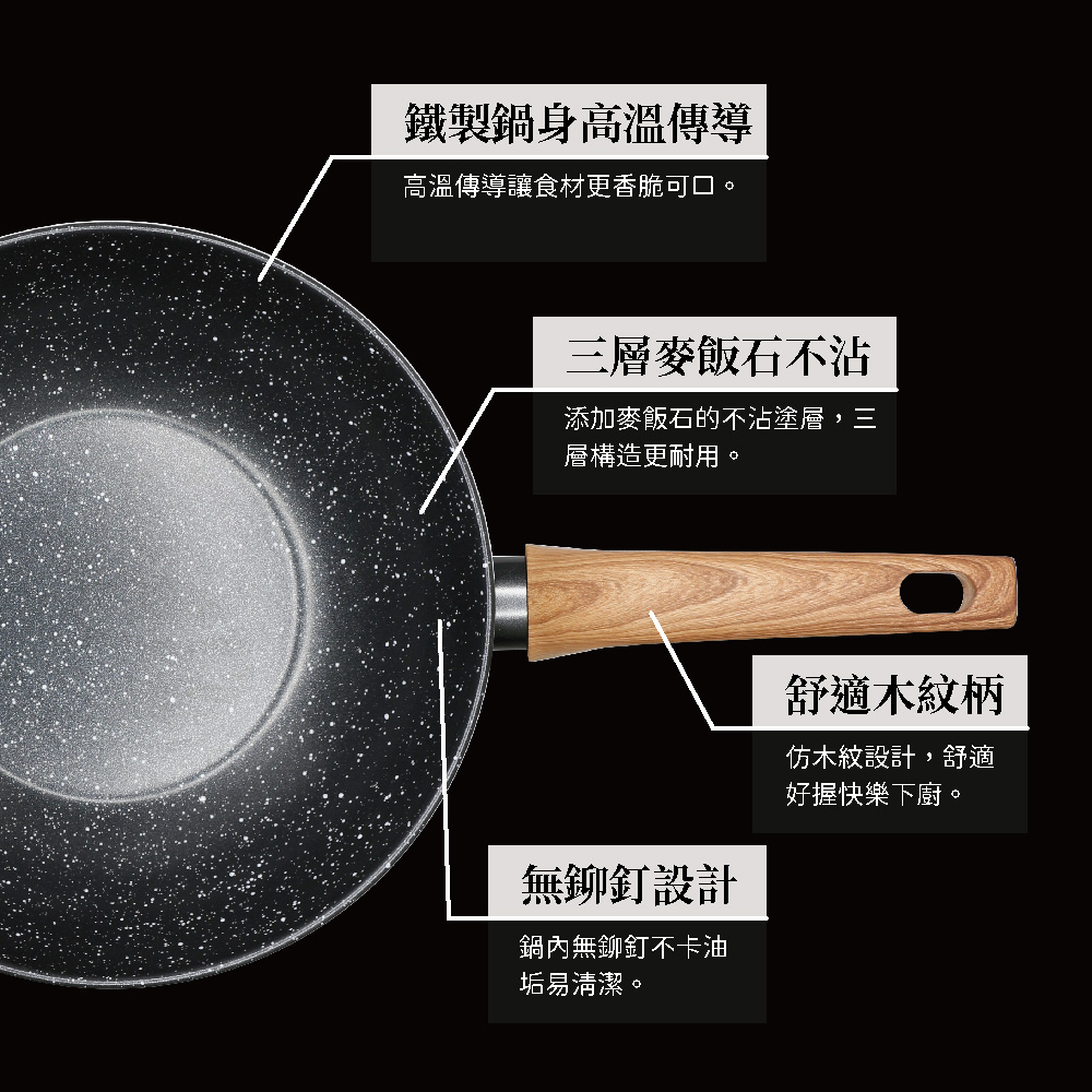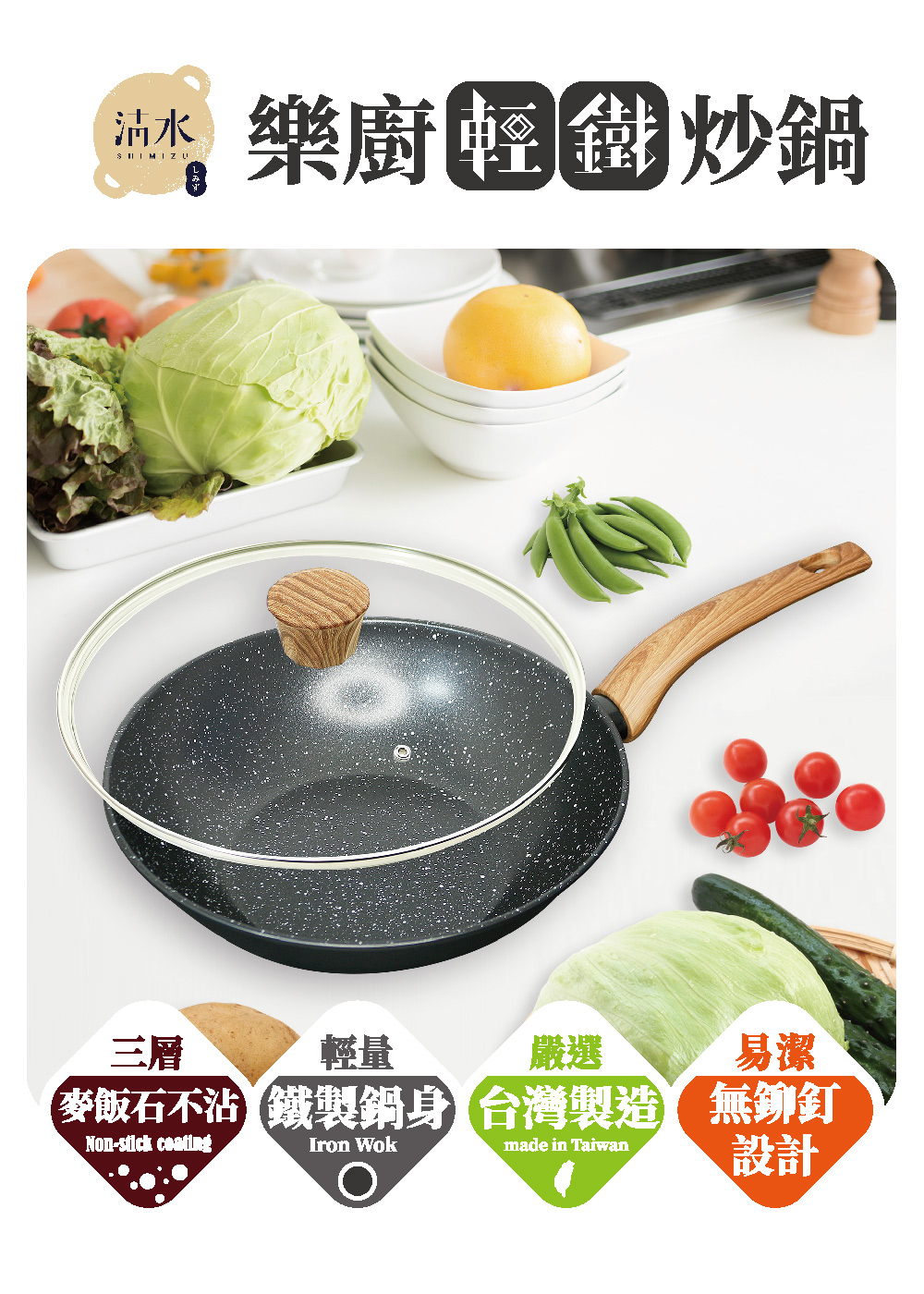 ◆清潔方式:一般清潔方式即可(禁用菜瓜布、鋼刷、鐵鏟)。※輕量鐵製鍋身,三層麥飯石不沾強化不沾耐用度。