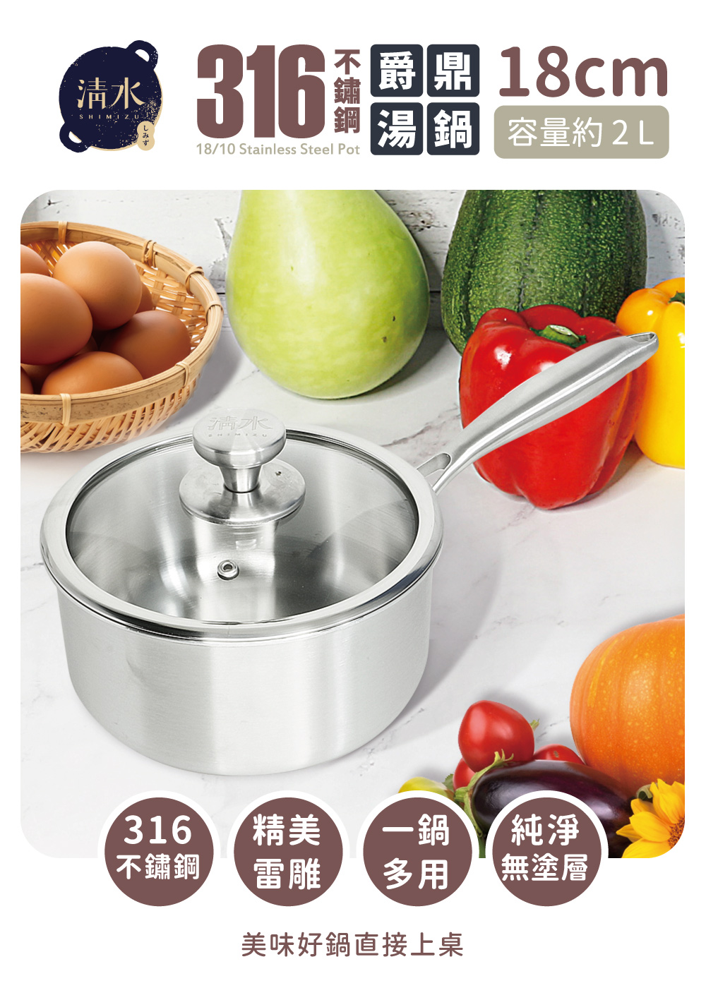 ※鍋內為316優質不鏽鋼製造,比304不鏽鋼更耐酸鹼,品質更上一層,安全可靠絕無任何化學塗層。