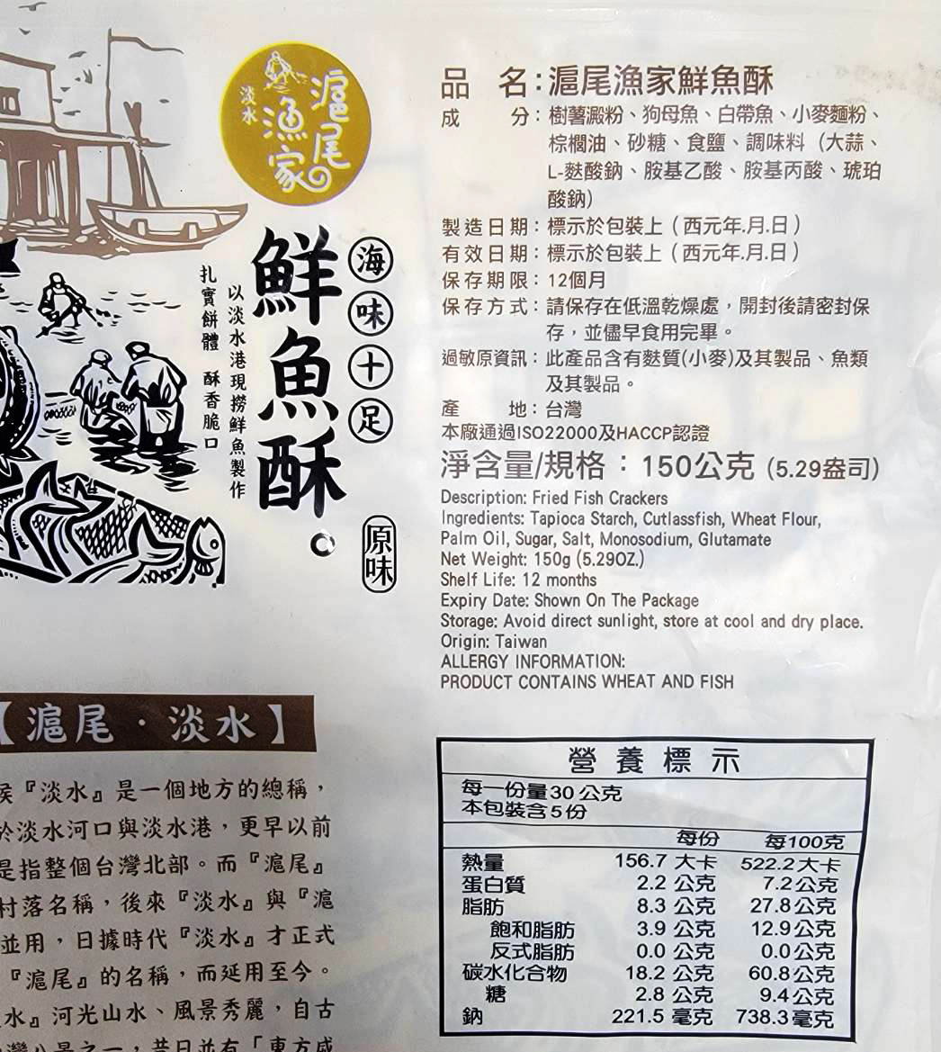 團購夯品 聚餐聚會必吃零食 滬尾漁家鮮魚酥150g [18包免運組]