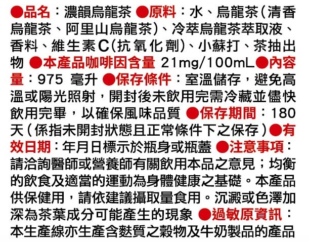◎Brand:濃韻 ◎Specifications: 975ml毫升 x 1 x 12Bottle瓶